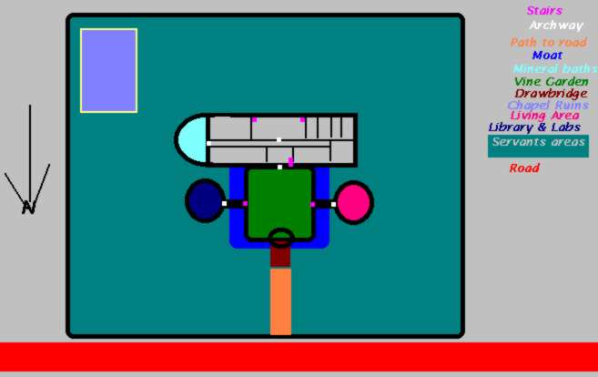 Eve pauses thinking. "There are the chapel ruins, they are pretty overgrown. And the courtyard. I don't think that it will rain, so if you want to sleep under open sky, that is your perogative." |
